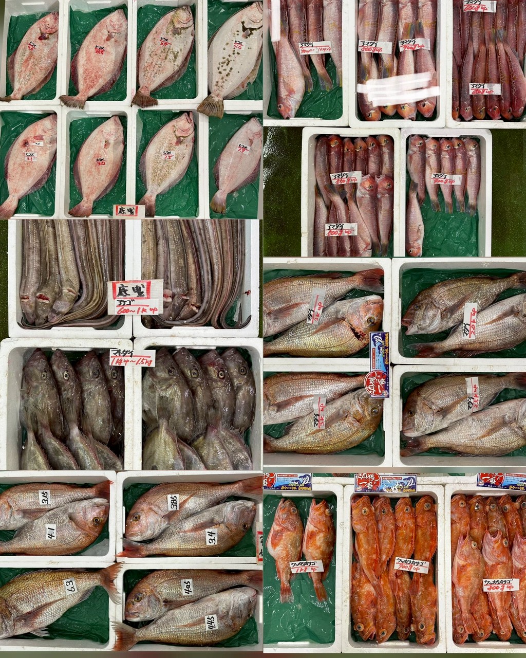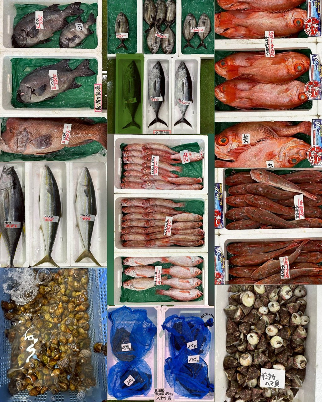 ■底曳(沖獲)チカメキントキ、ホウボウ、ウッカリカサゴ、マダイ■底曳マダイ、アナゴ、マトダイ、ヒラメ、アマダイ、どんちっちノドグロ■定置網ツムブリ、キハダ、オキアジ、ヨコワ■突漁イシダイ、コブダイ■その他バイ貝、ギンタカハマガイ、スッポン