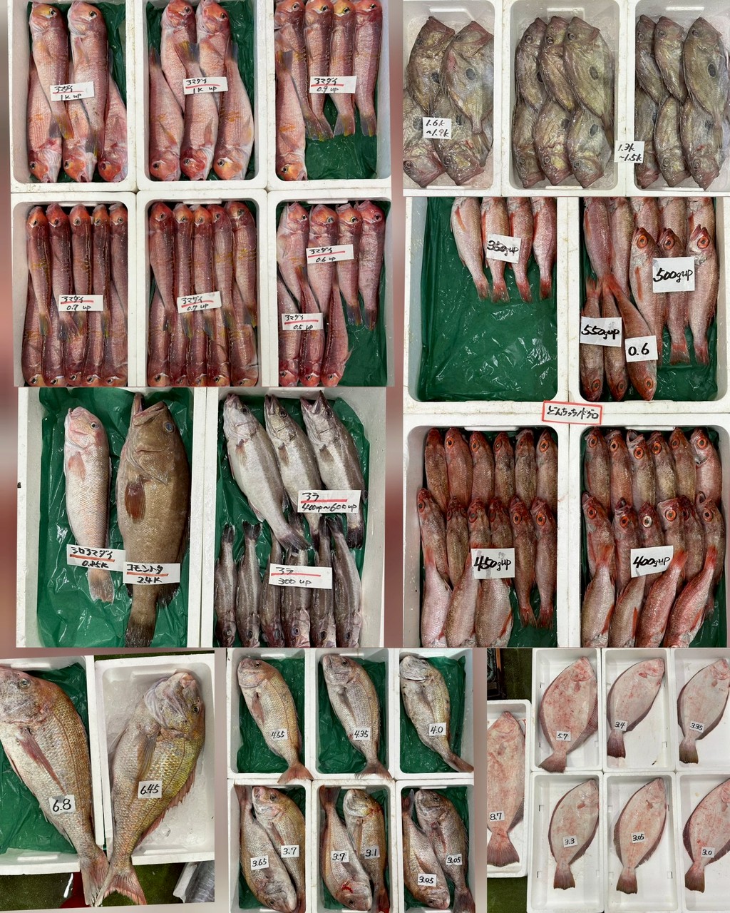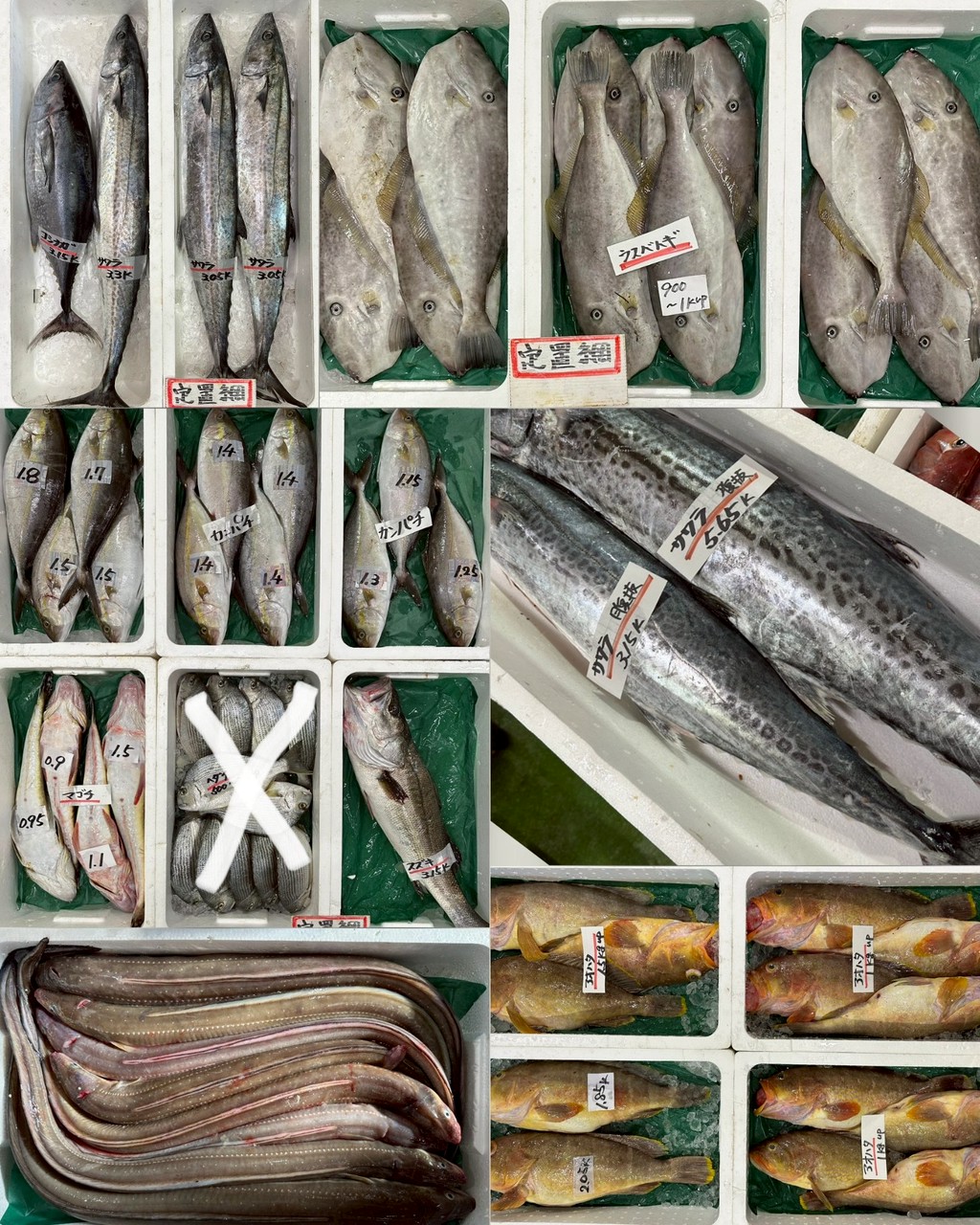 ■底曳タイ、アマダイ、どんちっちノドグロ、アラ、コモンハタ、シロアマダイ、マトダイ、ヒラメ、サワラ、アナゴ、アオハタ■定置網サワラ、コシナガ、ウスバハギ、カンパチ、スズキ、マゴチ