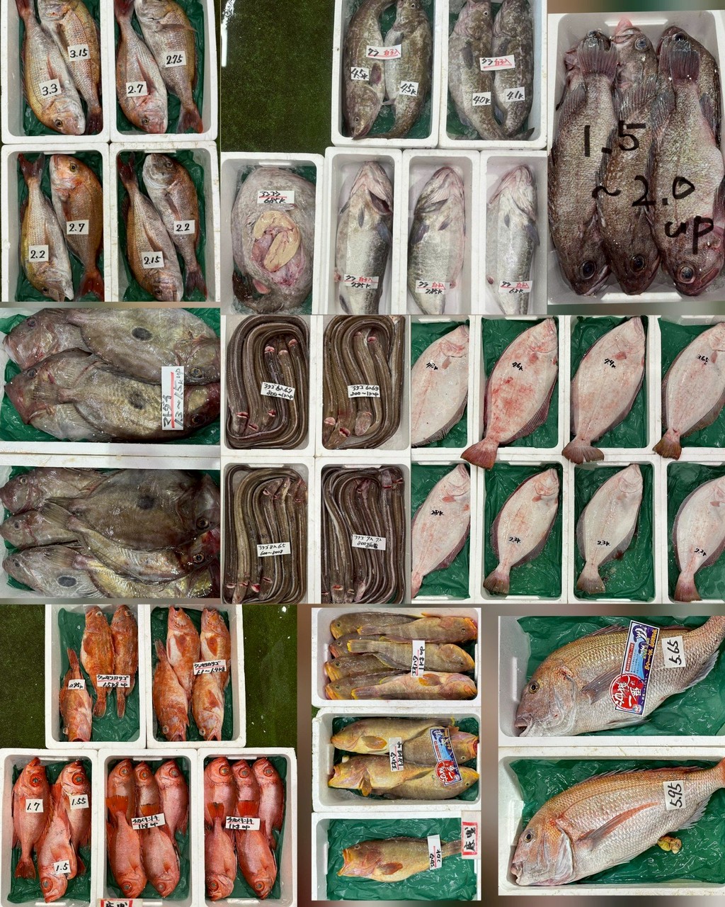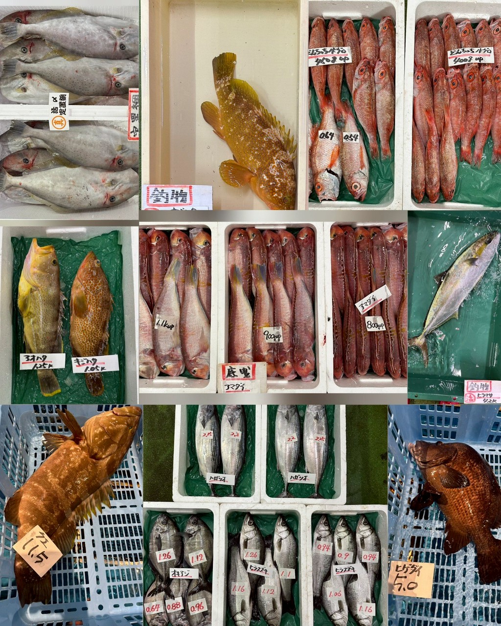 ■底曳マダイ、ヒラメ、ウッカリカサゴ、チカメキントキ、アオハタ、アナゴ、マトダイ、キツネメバル、タラ、アンコウ、アマダイ、どんちっちノドグロ■定置網ハガツオ、ヒラスズキ、オキアジ、ウスバハギ■釣物キジハタ、アオハタ
