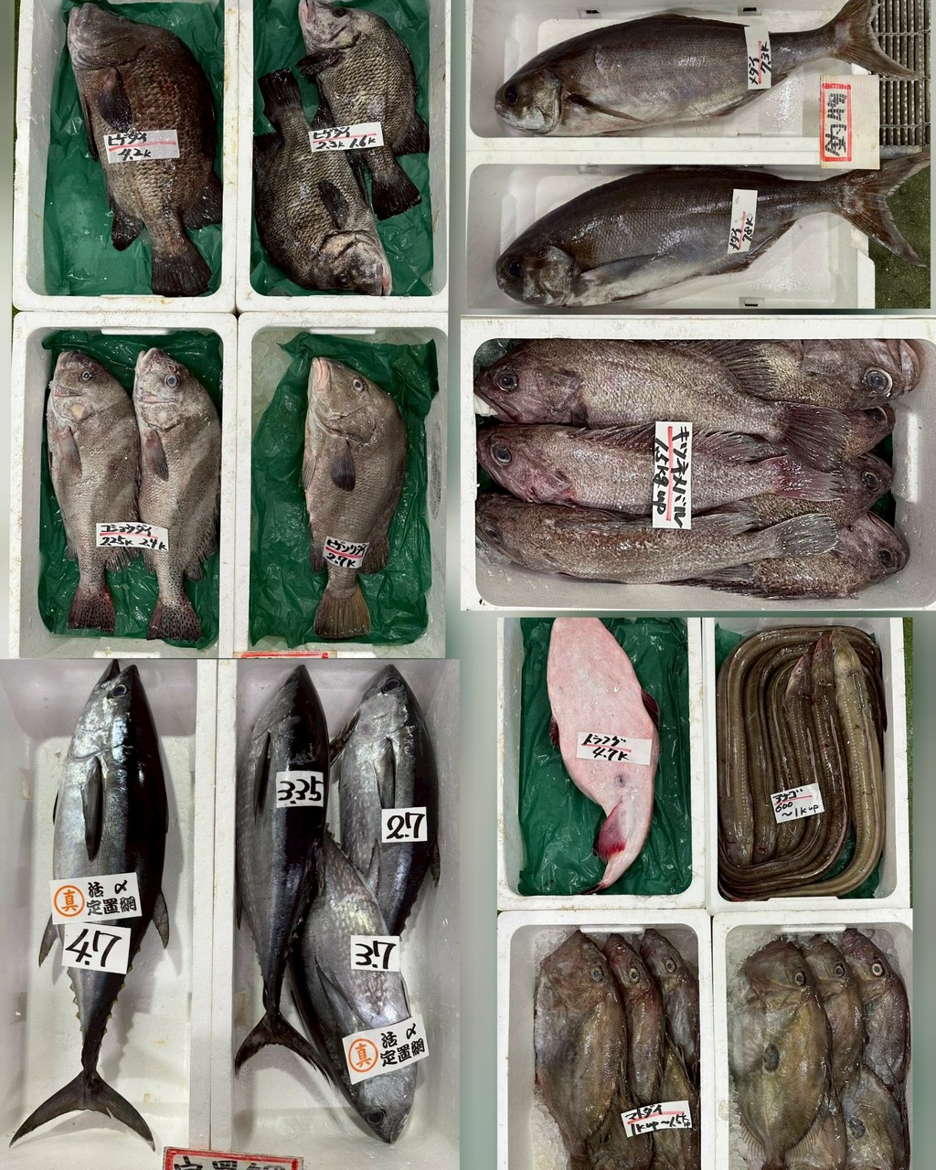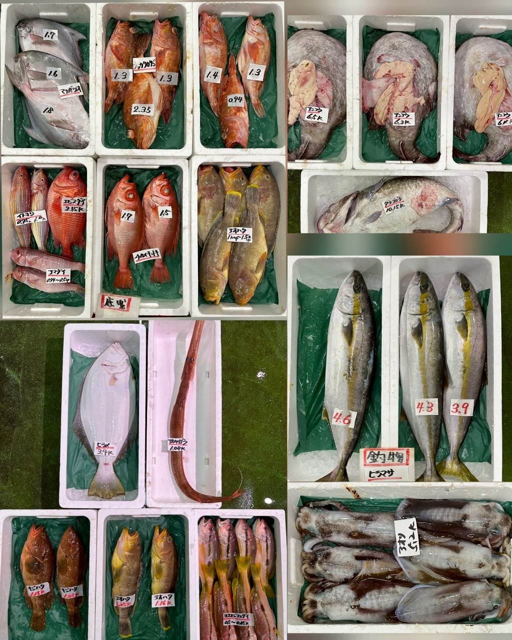 ■底曳アンコウ、タラ白子入、ウッカリカサゴ、マナガツオ、アオハタ、チカメキントキ、エビスダイ、イトヨリ、アマダイ、キツネメバル、アナゴ、マトダイ、トラフグ■定置網コシナガ■釣物ヒゲダイ、ヒゲソリダイ、コショウダイ、メダイ、ヒラマサ、アオリイカ、アカヤガラ、ヒラメ、アオハタ、キジハタ