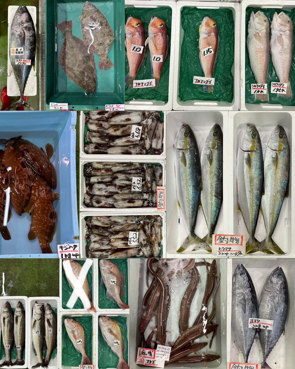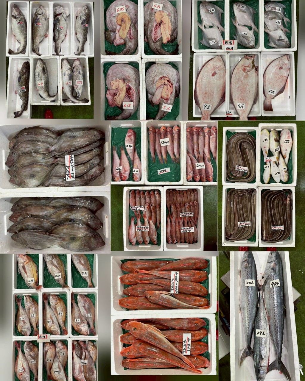 11/26 本日の情報をお送りします ■底曳 タイ、ヒラメ、マナガツオ(大)、ホウボウ(大)、マトダイ、アナゴ、マフグ白子入、タラ白子入、アンコウ、どんちっちノドグロ、アマダイ、サワラ ■釣物 ヨコワ、ヒラマサ、タイ、スズキ、トビハタ、キジハタ、シロアマダイ、アカアマダイ ■定置網 ヨコワ ■底引 活 ヒラメ、アナゴ ■釣物 活 キジハタ ■釣 アオリイカ