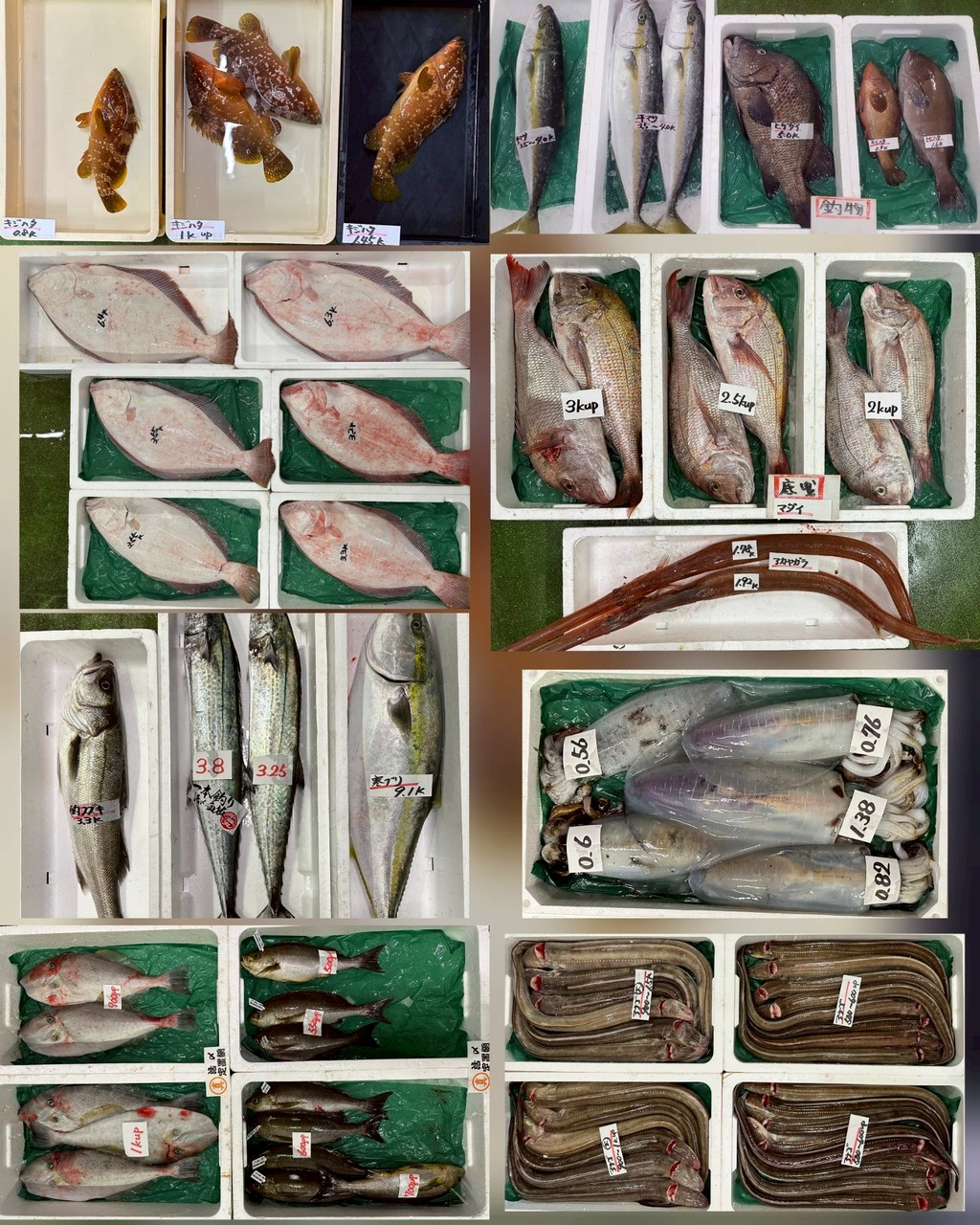 ■底曳どんちっちノドグロ、アマダイ、ヨコイタチウオ、ユメカサゴ、イトヨリ、アオハタ、アラ、ウッカリカサゴ、マハタ、エビスダイ、ヒラメ、マダイ、アカヤガラ、アナゴ、マトダイ、タラ(白子入)、モンゴウイカ■定置網サワラ、スギ、ヒラマサ、ウスバハギ、イサキ■釣物寒ブリ、サワラ、スズキ、トビハタ、キジハタ、ヒゲダイ、ヒラマサ、アオリイカ