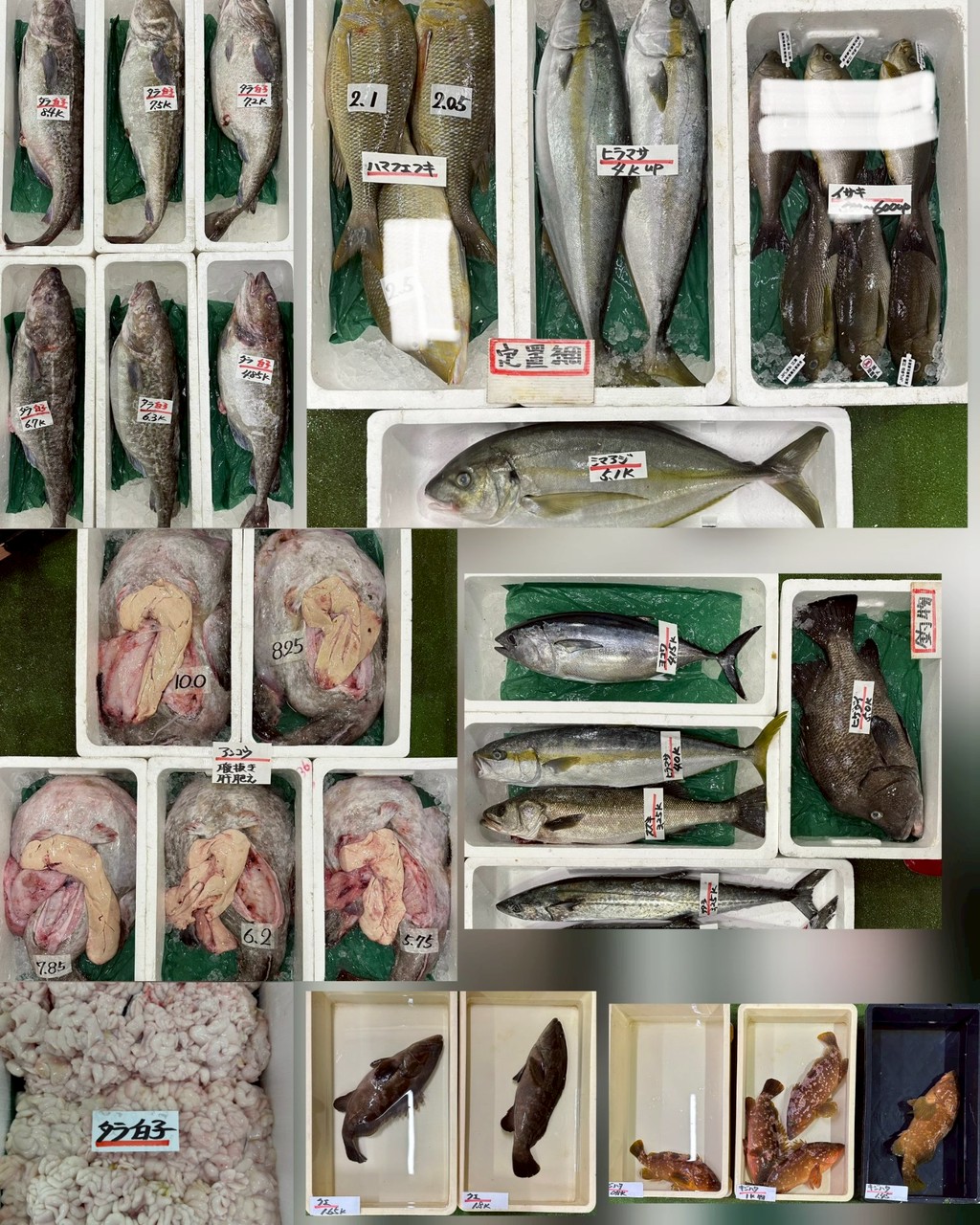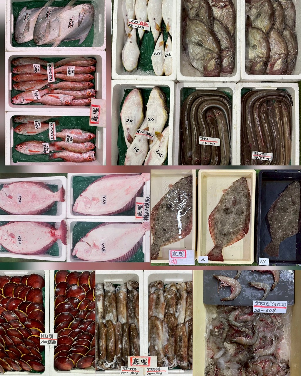 ■釣物ヨコワ、ヒラマサ、スズキ、サワラ、ヒゲダイ■定置網イサキ、ヒラマサ、ハマフエフキ、シマアジ■底曳きアンコウ、タラ白子入、タラ白子、マダラ(白子入)、マフグ(白子入)、マフグ(白子ナシ)、アナゴ、マトダイ、ヒラメ(神経〆)、マナガツオ、どんちっちノドグロ、アオリイカ■底曳き(活)ヒラメ■釣物(活)キジハタ、クエ