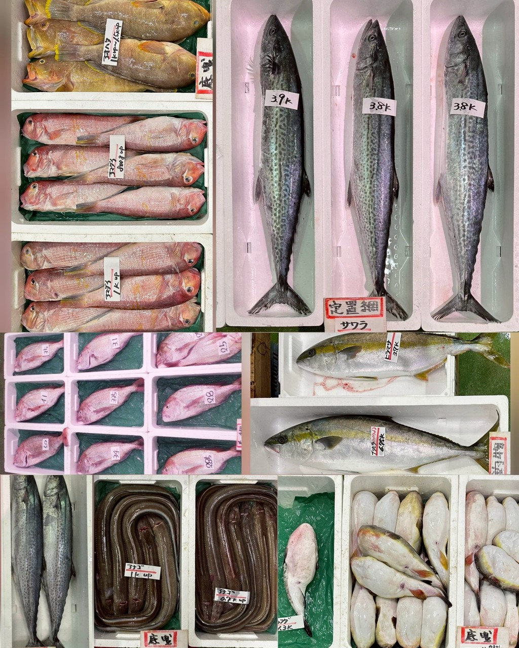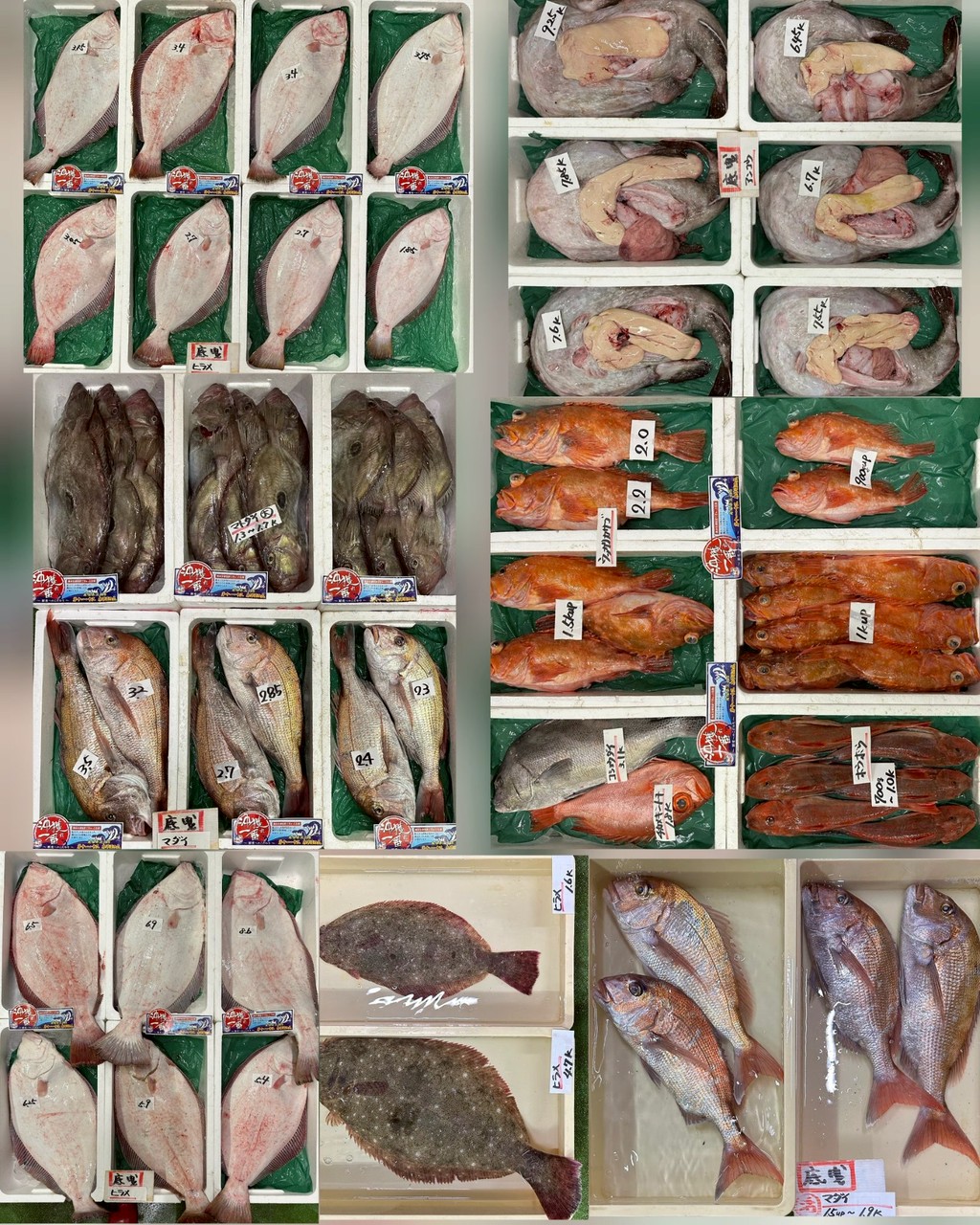 ■底曳活ヒラメ、活マダイアンコウ、マフグ(白子無し)、トラフグ、アオハタ、アマダイ、アナゴ