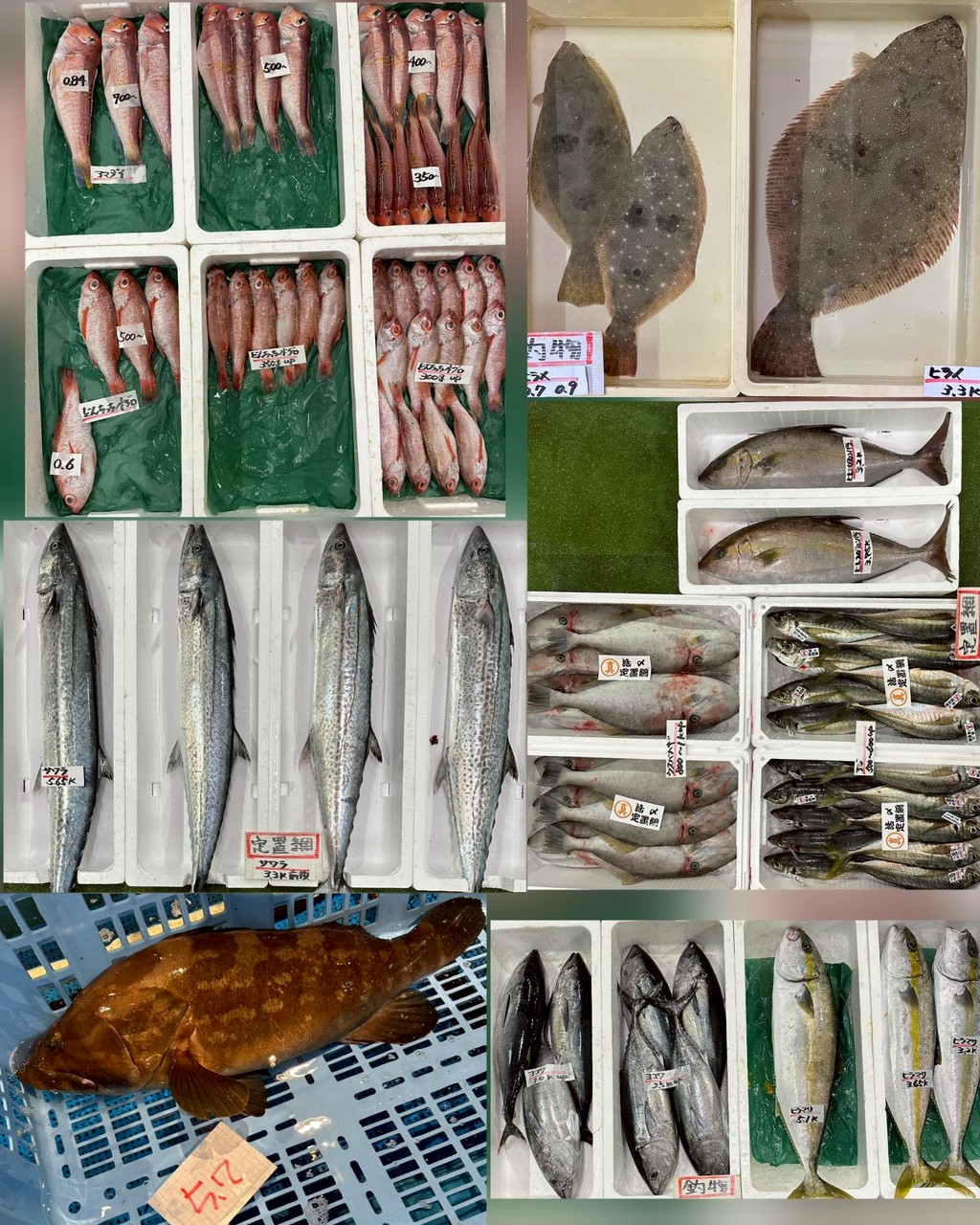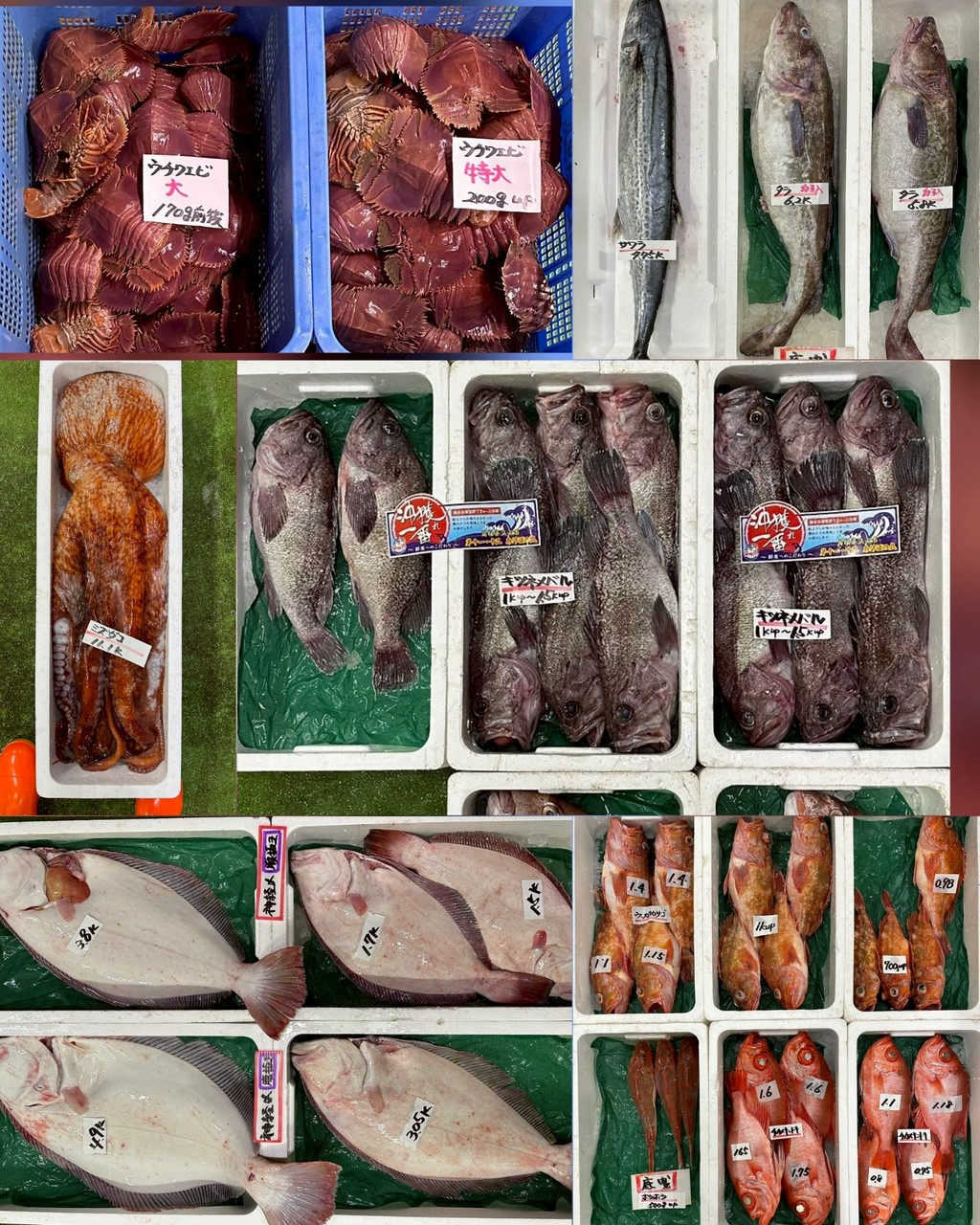 ■底曳活ウチワエビ、ミズダコ、タラ白子入、サワラ、マトダイ、キツネメバル、タイ、ヒラメ(神経〆 腹抜き)、ウッカリカサゴ、チカメキントキ、ホウボウ、アマダイ、どんちっちノドグロ