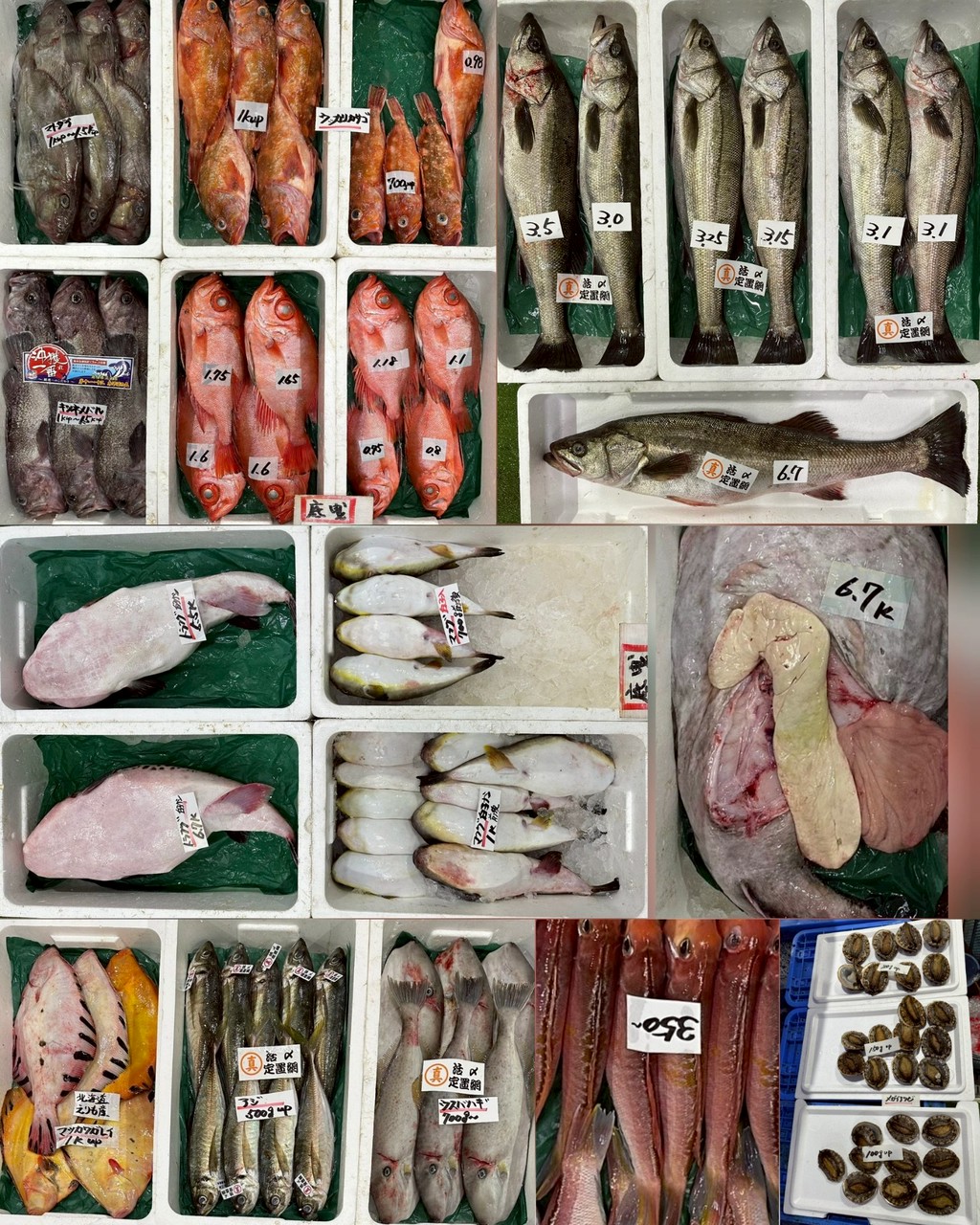■底曳アンコウ、トラフグ白子、マフグ白子、マフグ白子入り、ウッカリカサゴ、キツネメバル、チカメキントキ、マトダイ、アマダイ、