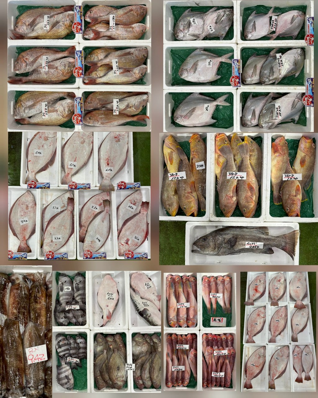 ■底曳ヒラメ、アオハタ、イシナギ、トラフグ、マトダイ、イシダイ、アオリイカ