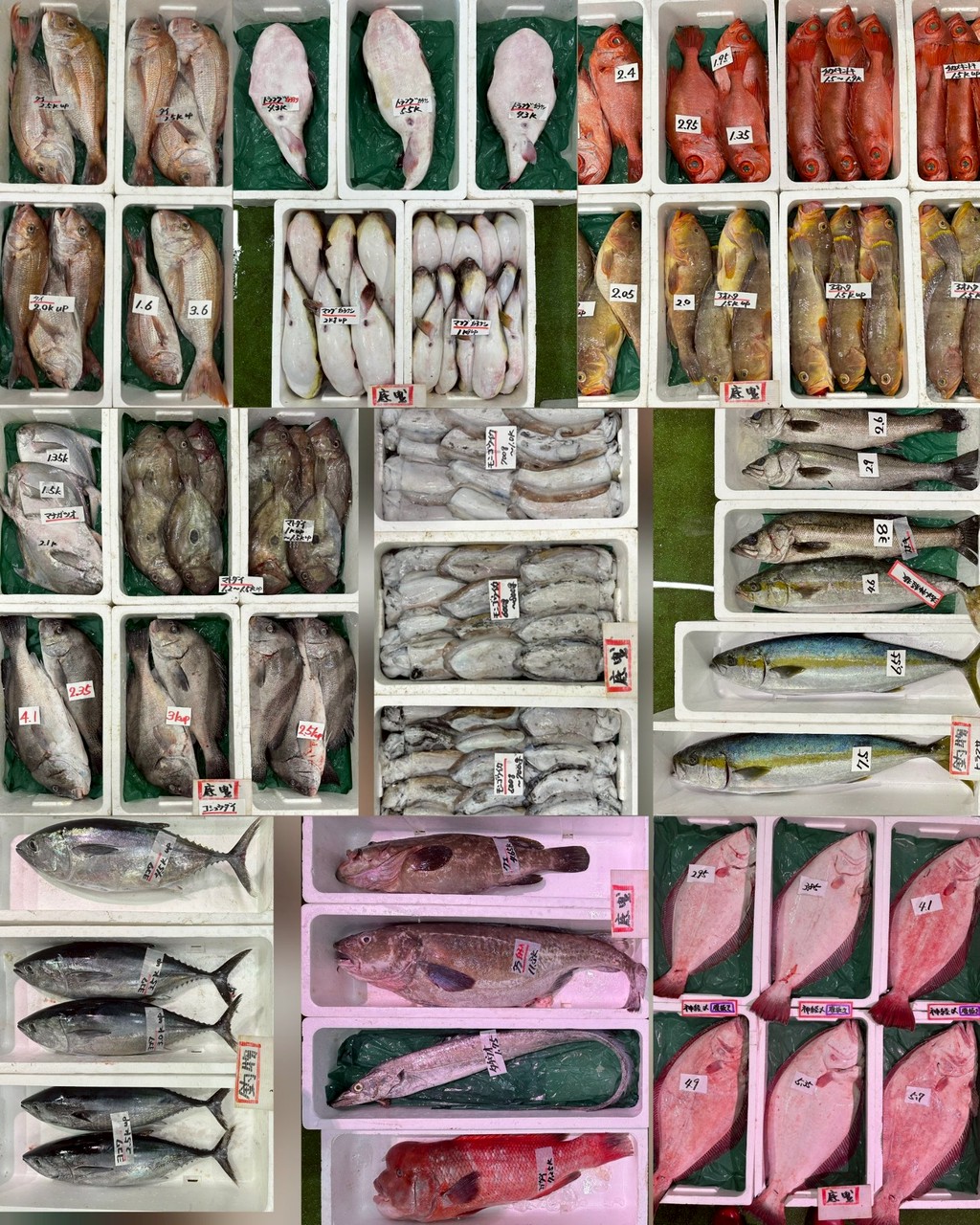 ■底曳モンゴウイカ、トラフグ白子ナシ、トラフグ白子入り、マグロ白子ナシ、タイ、クエ、タラ白子、タチウオ、コブダイ、チカメキントキ、アオハタ、マトダイ、コショウダイ、マナガツオ、アマダイ、ヒラメ