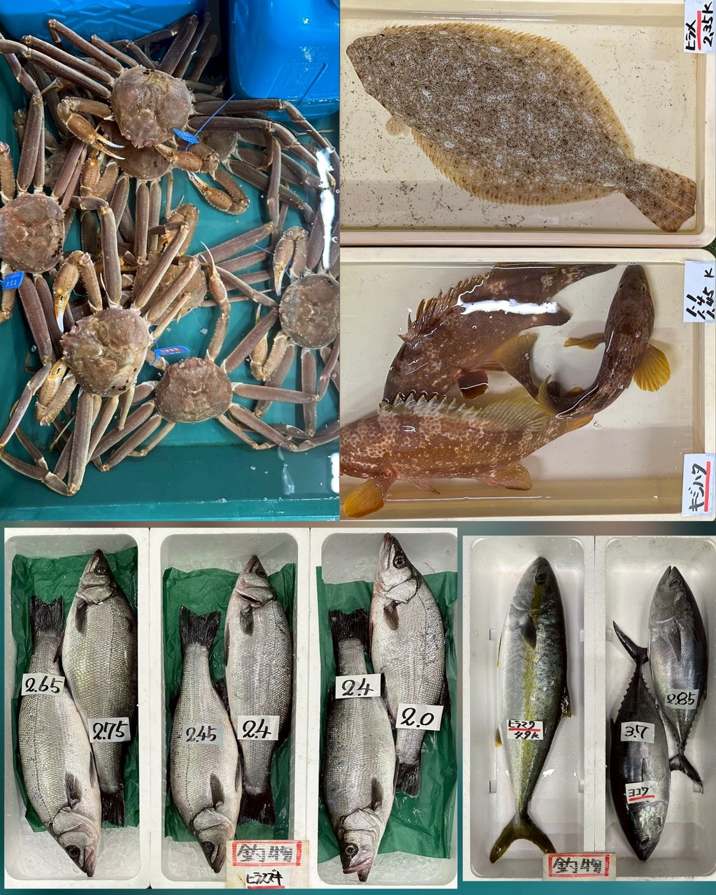 本日の入荷情報をお送りします。※底曳初入船は9日(金曜日)予定です。■釣物活ヒラメ、活キジハタ、ヒラスズキ、ヨコワ、ヒラマサ■定置網スズキ、オナガグレ、サワラ、コシナガ■その他シロミル、アカナマコ、大和シジミ(宍道湖1キロ入り)■カニマツバガニ(境港)