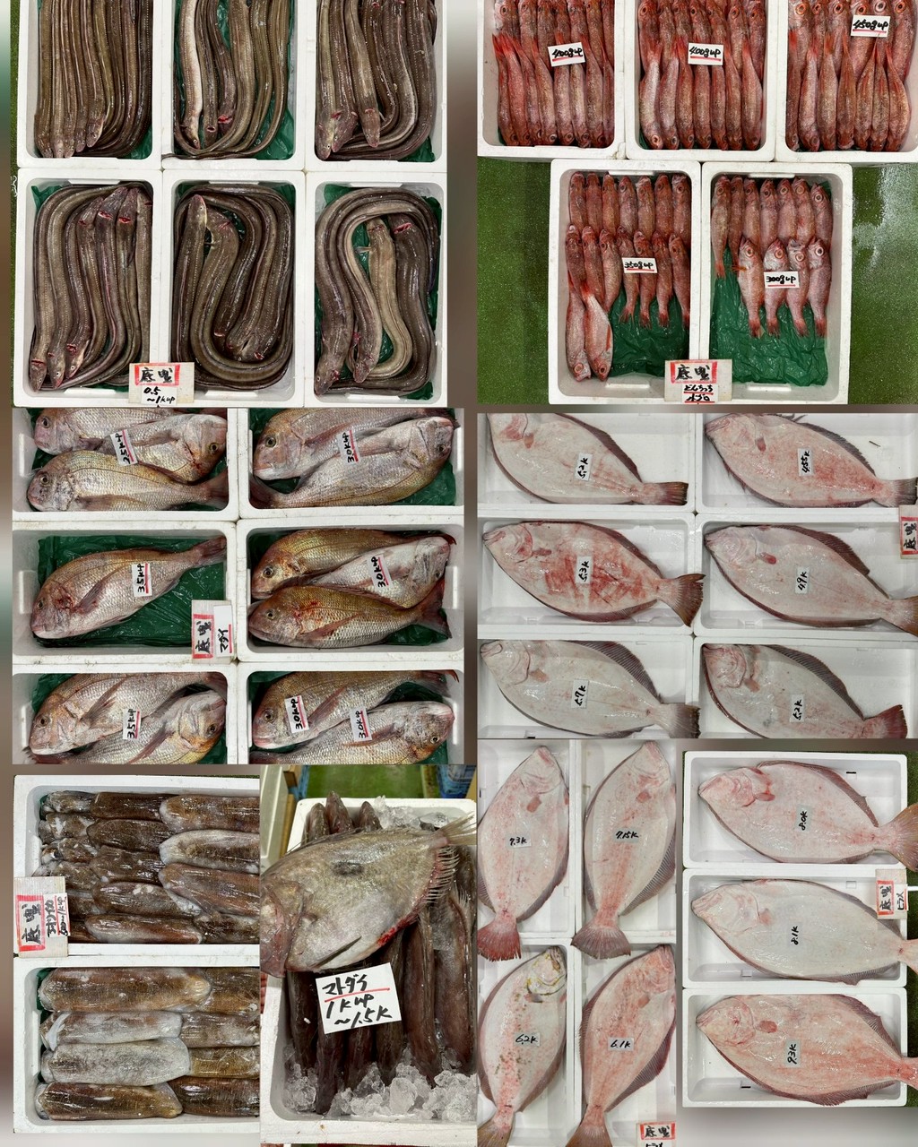 ■底曳マダイ、ヒラメ、アナゴ、マトダイ、アオリイカ、どんちっちノドグロ、アマダイ