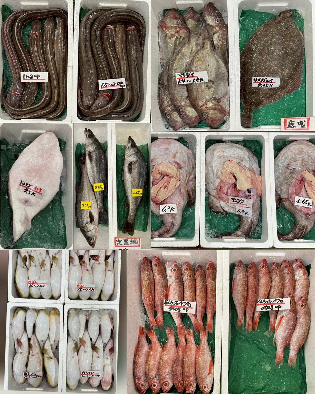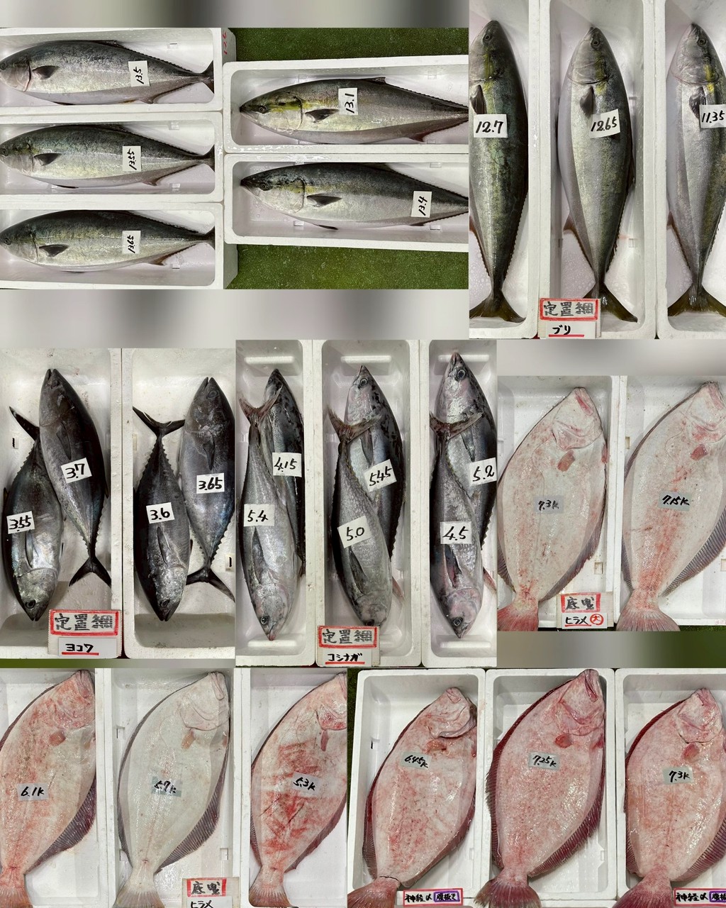 1/14 本日の入荷情報をお送りします。 ■ 底曳 トラフグ(白子入)、マフグ(白子入/白子ナシ)、 アンコウ、アナゴ、サメガレイ、マトダイ、 ヒラメ(5kg up/7kg up/活〆)、 どんちっちノドグロ ■ 定置網 スズキ、コシナガ、ヨコワ、 ブリ(片身OK/11up~12up・13up) ■ その他 アカナマコ、シロミル