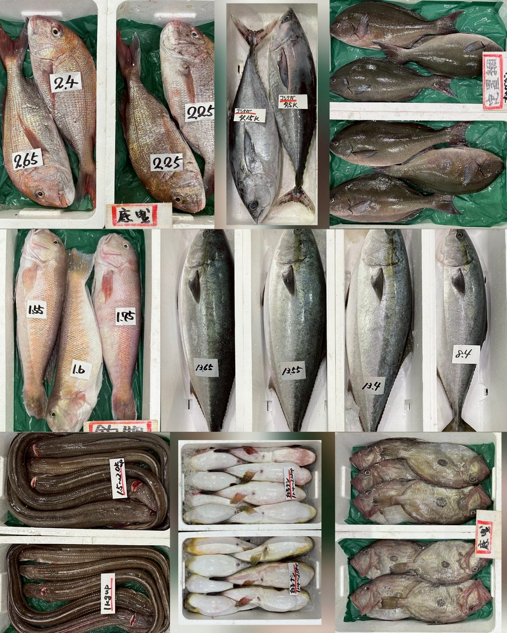 ■底曳タイ、アマダイ、マトダイ、マフグ白子無し、アナゴ