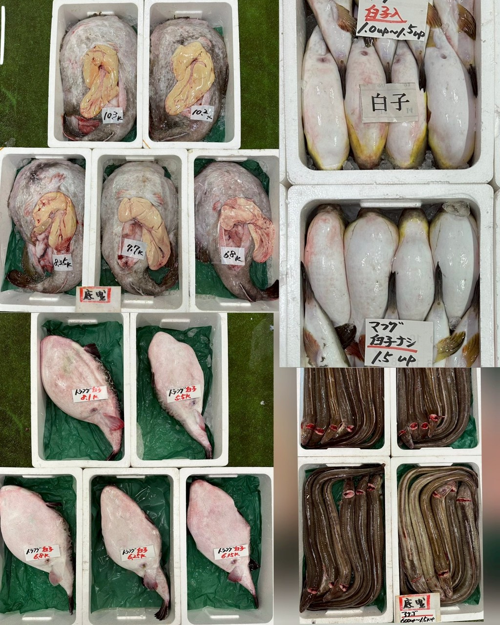 ■底曳トラフグ、マフグ(白子入り/白子ナシ)、アンコウ(半身OK)、活ヒラメ、アナゴ