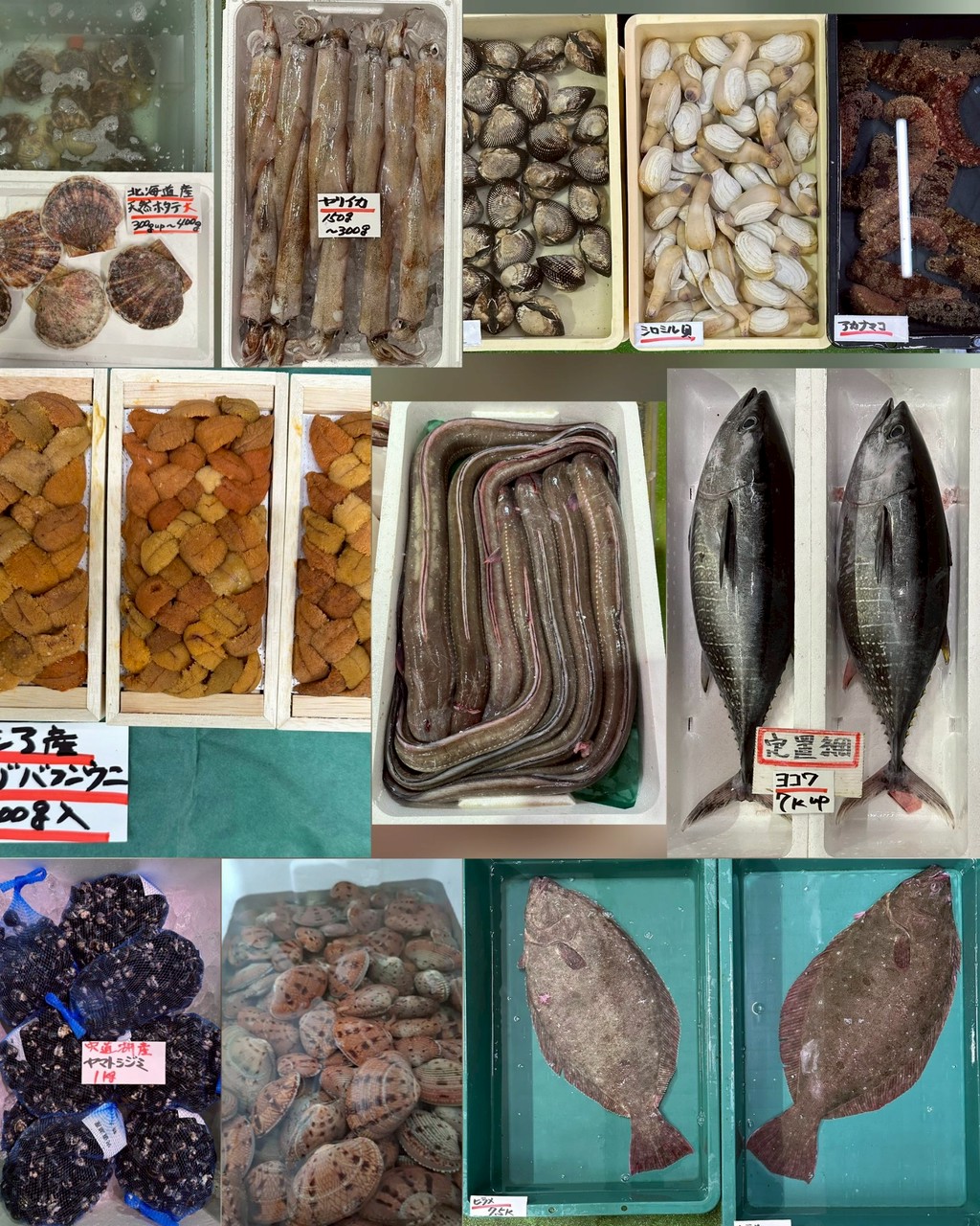 ■その他アカナマコ(浜田)、シロミル(山口)、アオヤギ(韓国・浜田活し)、ホタテ(北海道・天然・4年物)、スダレ貝、エゾバフンウニ(ロシア・100g)、ヤリイカ