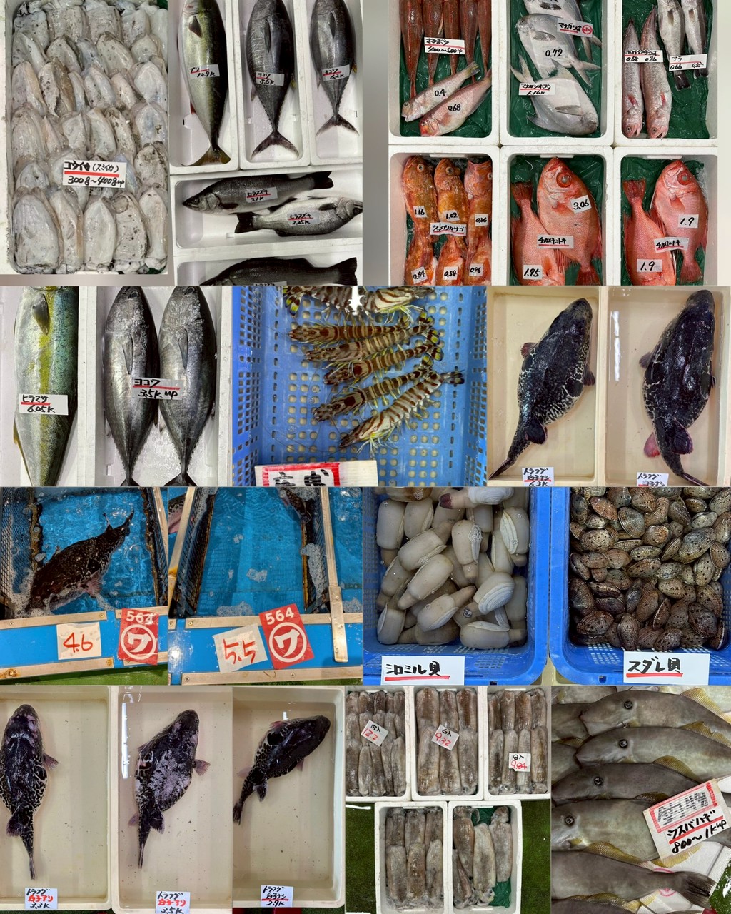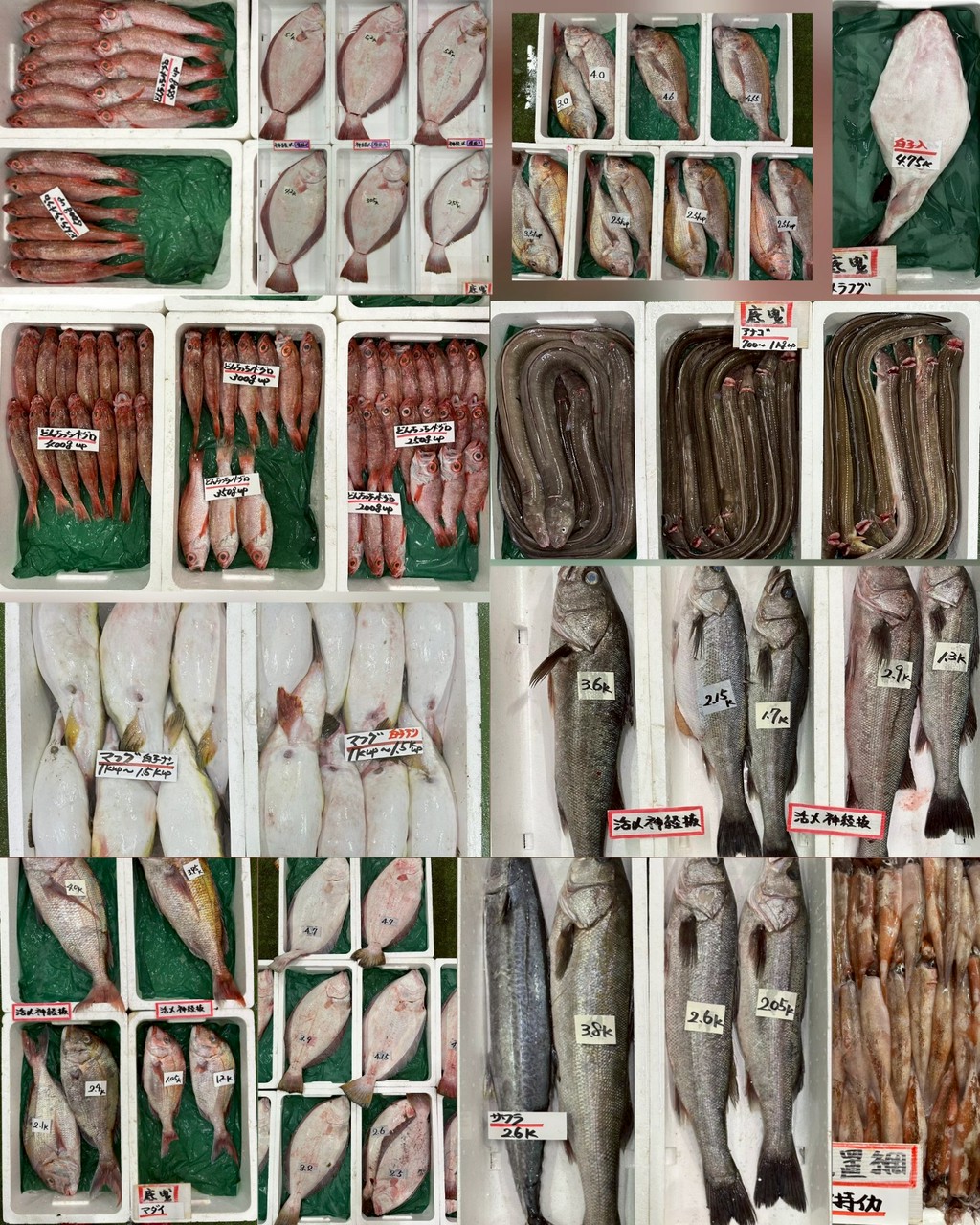 ヒラメ(神経〆・腹抜)、タイ(神経〆)、スズキ(神経〆)、ヒラメ、マダイ、スズキ、サワラ、トラフグ(白子有り)、マフグ(白子有り)、マフグ(白子無)、どんちっちノドグロ、アナゴ、アラ、ヨロイイタチウオ、マナガツオ、ホウボウ、アマダイ、チカメキンキ、ウッカリカサゴ
