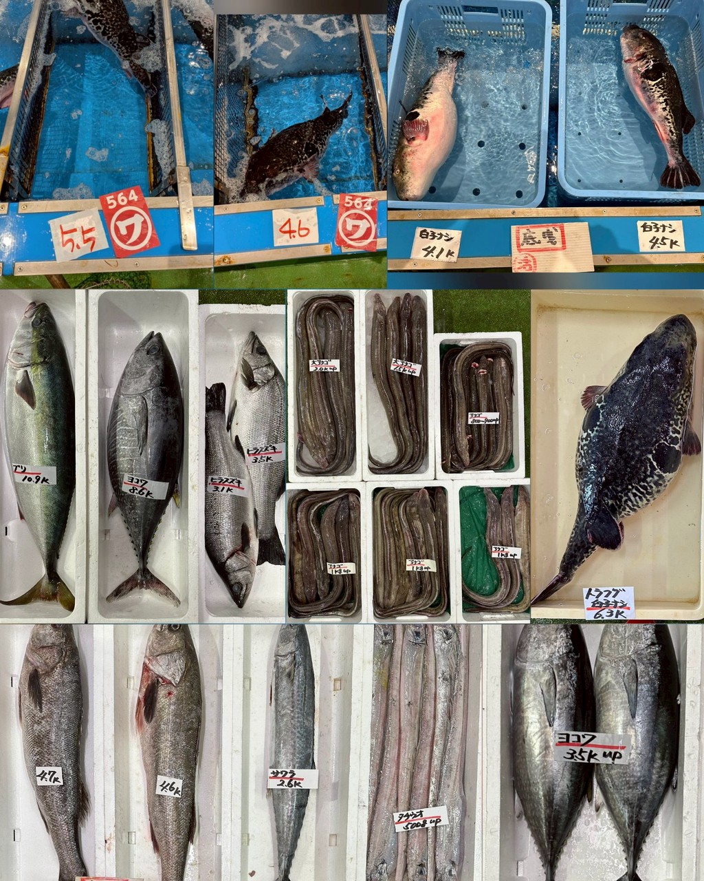 ヒラメ(小)、ヒラメ(大)、ヒラメ(神経〆腹抜き)、マダイ、マトダイ、どんちっちノドグロ、マナガツオ、チカメキントキ、タチウオ、サワラ(加熱用)、スズキ、アナゴ、アオリイカ、モンゴウイカ、コウイカ(スミイカ)、活トラフグ白子無し