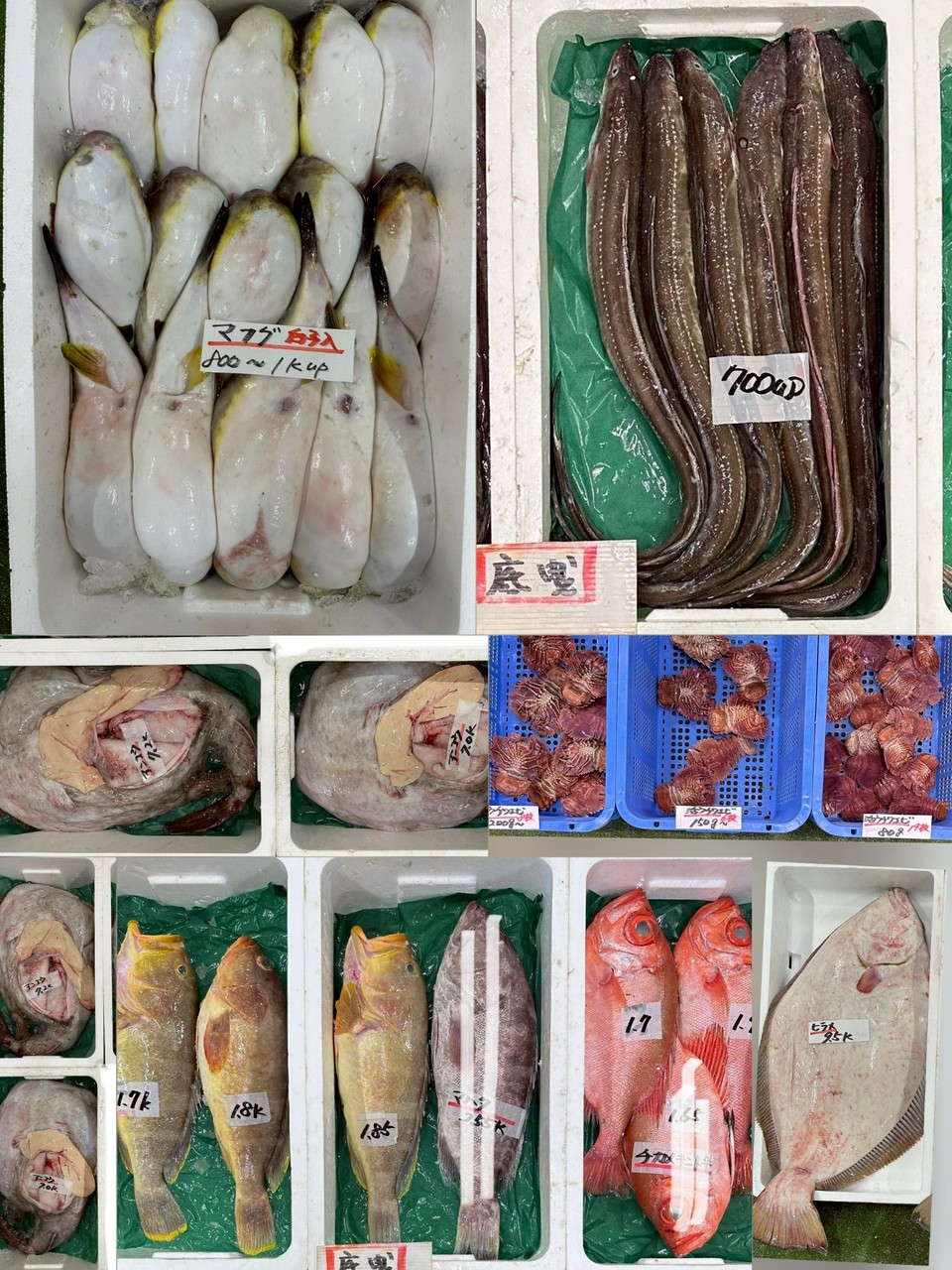 ■底曳タイ、ヒラメ、チカメキントキ、アオハタ、マフグ(白子入)、アンコウ、アナゴ活ウチワエビ、活ヒラメ(肥)、神経〆ヒラメ(肥)