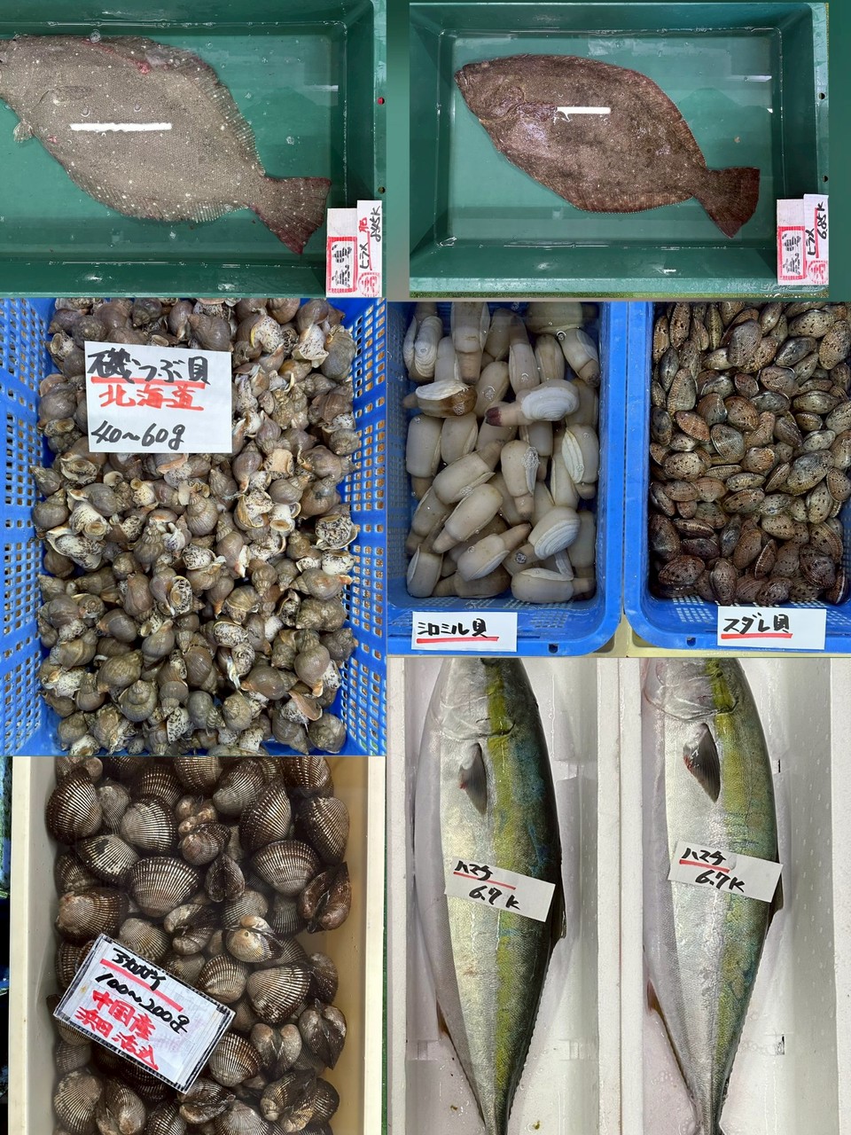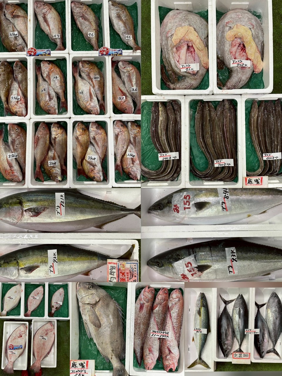 ■底曳タイ(沖獲れ)、ヒラメ、ヒラメ(沖獲れ)、チカメキントキ(沖獲れ)、ヨロイイタチウオ(沖獲れ)、コショウダイ、アンコウ、アナゴ