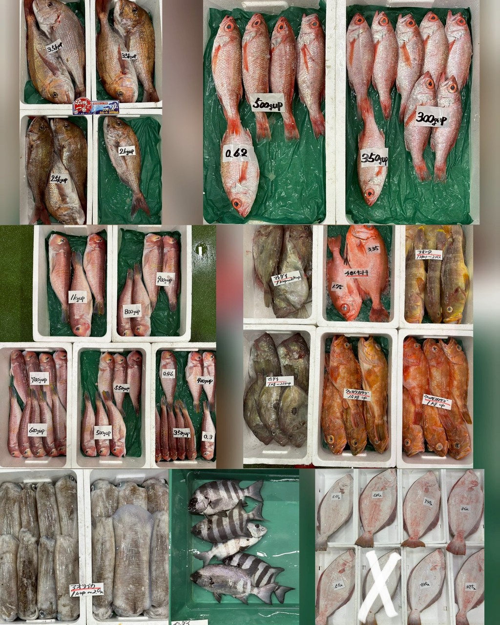 ■釣物チカメキントキ、マダイ、ワカナ、アオハタ、イシダイ、イサキ、キツネメバル、ハマチ、メダイ、活クエ