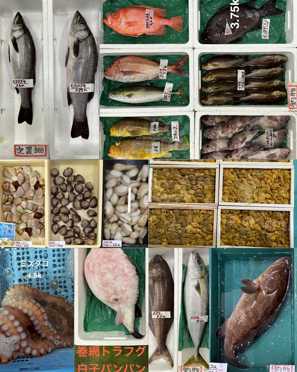 ■その他活ミズダコ、浜田ムラサキウニ(8枚限定)、シロミル、鴨島ハマグリ