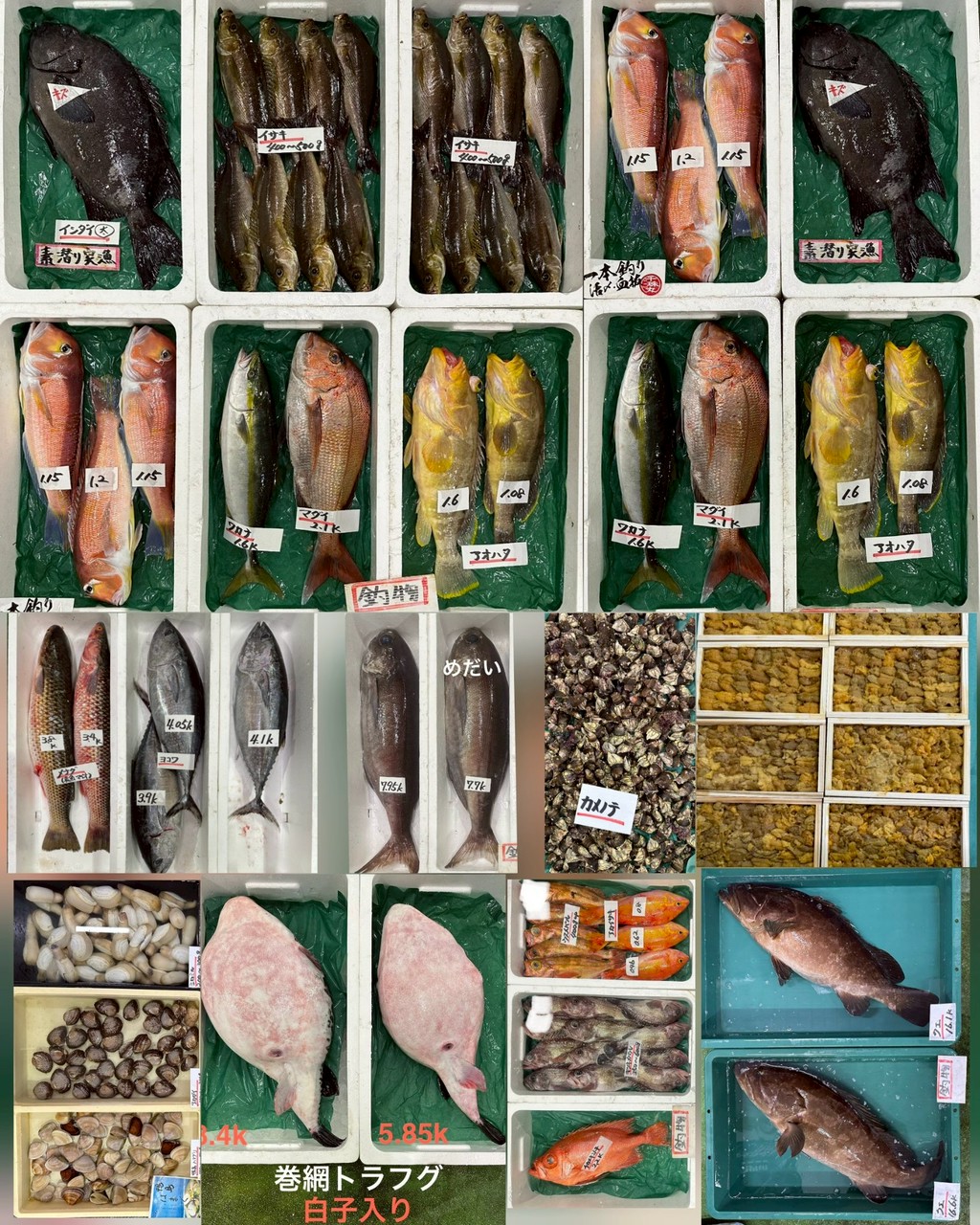 ■釣物イサキ、アオハタ、マダイ、ワカナ、アマダイ、イシダイ(突漁)、ウスメバル、アカイサキ、キツネメバル、チカメキントキ、メダイ、活クエ