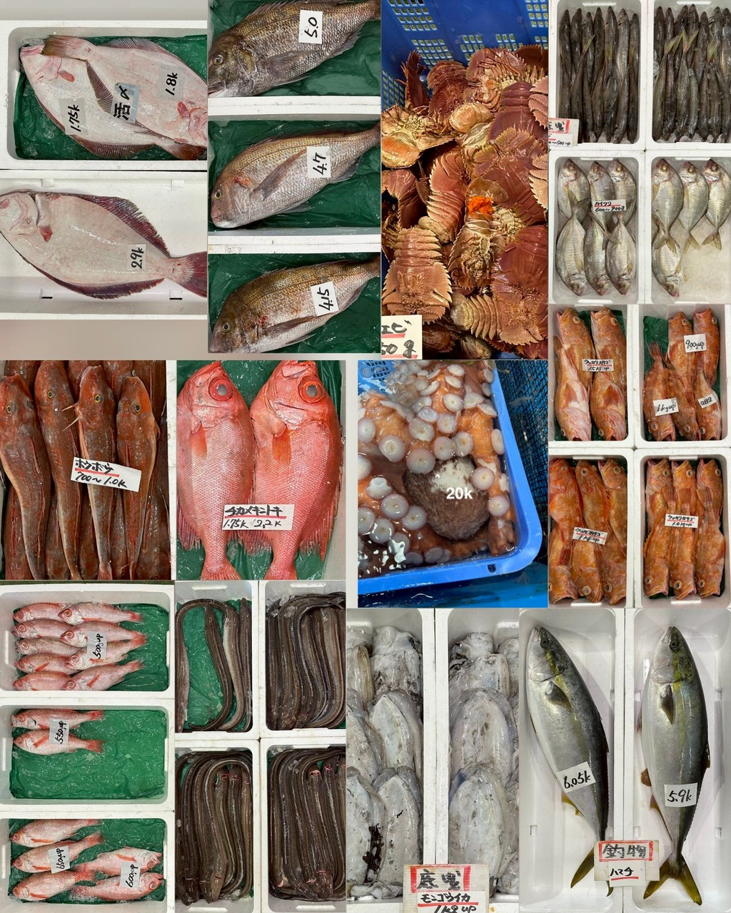 ■釣物ブリ(片身OK)、ハマチ、ヨコワ、サワラ、チカメキントキ、イサキ、アオハタ、タイ(1k up)、タイ、ヒラマサ、ヒラスズキ