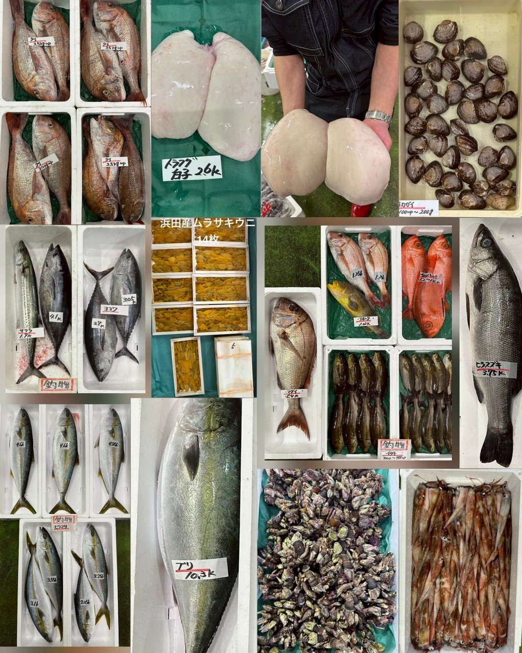 ■その他ムラサキウニ、カメノテ、シロミル、アカガイ、ハマグリ、子持ちイカ、トラフグ白子