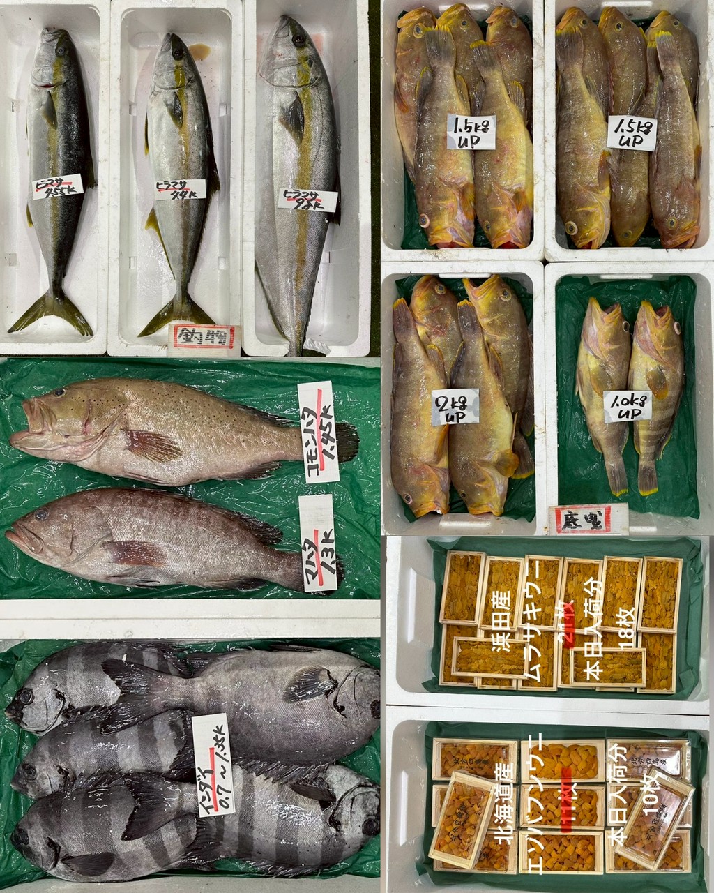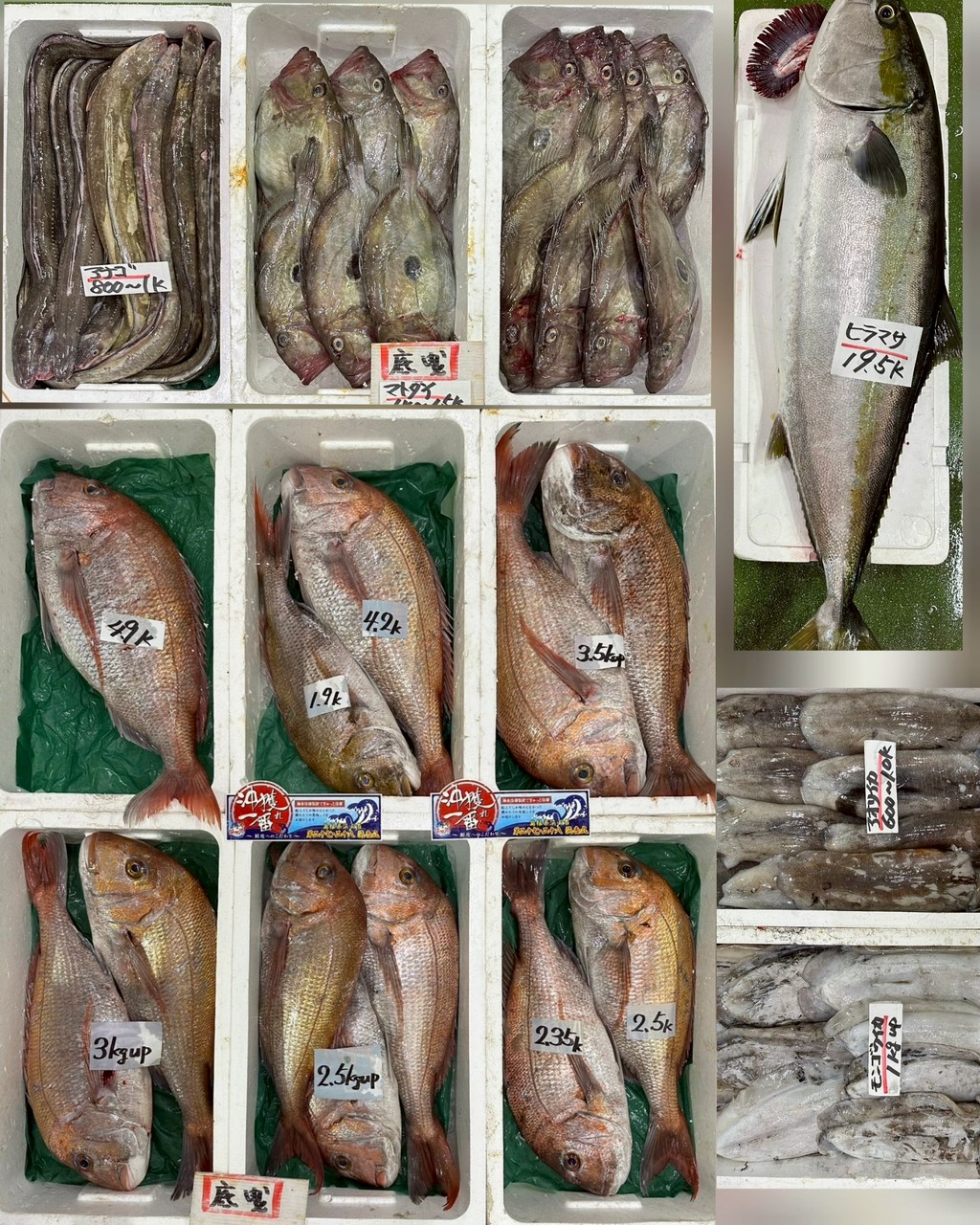 ■底曳アオハタ、コモンハタ、マハタ、イシダイ、マダイ、マトダイ、アナゴ、モンゴウイカ、アオリイカ