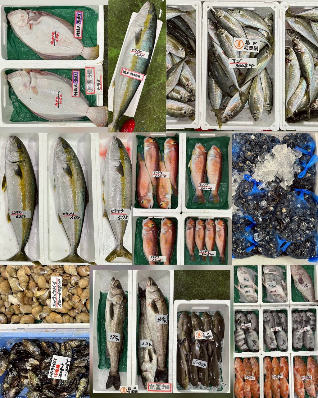 ■定置網イサキ、スズキ、ヒラメ(神経〆・腹抜き)、ヒラマサ(片身OK)、アジ