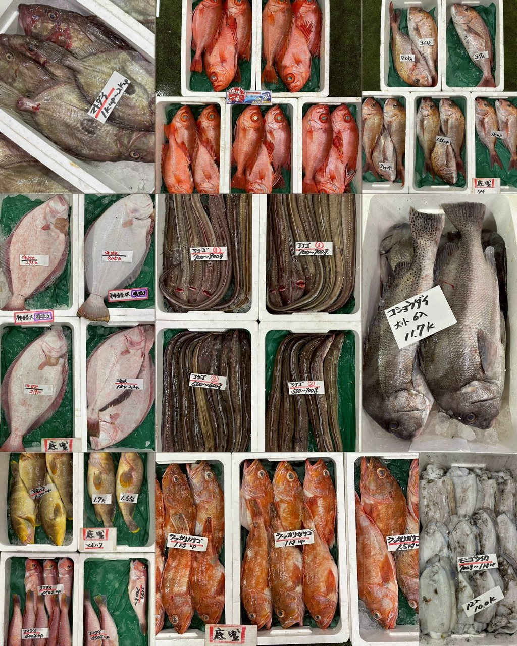 ■底曳マダイ、チカメキントキ、マトダイ、ウッカリカサゴ、アオハタ、アマダイ、コショウダイ、アナゴ、ヒラメ、モンゴウイカ、アオリイカ